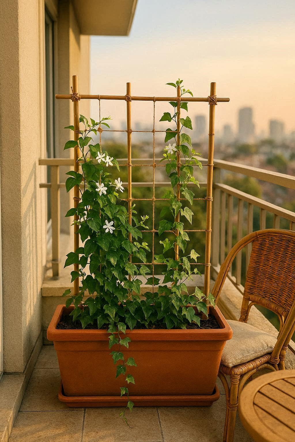 Start with the simplest design that suits your balcony style — the teepee for speed and cost, the bamboo grid for versatility, the fishing line for modern elegance. Add one climbing plant. Watch it grow.
