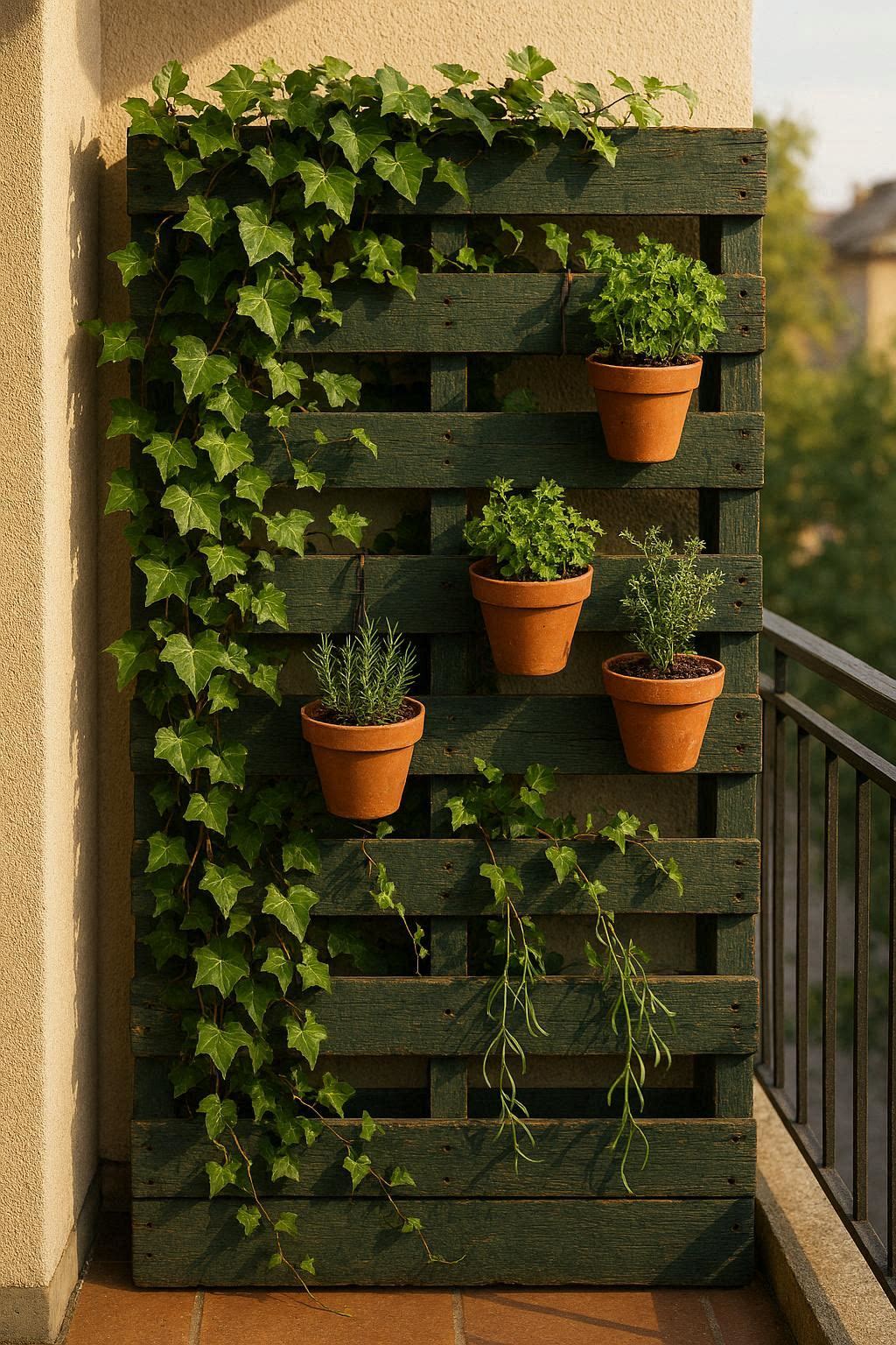 🪴 Against a wall or fixed to a railing on any balcony. Pallets are especially suited to wider balconies where a standard pallet width (approximately 80–120 cm) can be displayed fully. For narrower balconies, use a half-pallet.